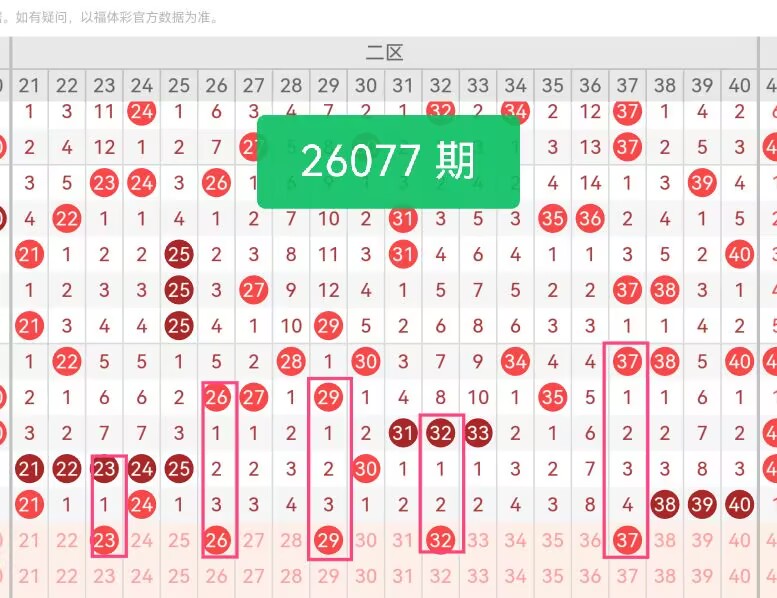 上期第二区间开奖5个号码,本期可能会稳定开出。23处于区间前段核心位置,近期出号节奏平稳,走势连贯,与前后号码形成有序衔接。26作为中段偶数,近期处于温和回暖态势,出号信号稳定,能有效补充偶数占比。29是中后段关键点位,近期活跃度提升,走势逐步走强,奇偶搭配合理。32处于区间中段,近期出号规律明显,整体走势平缓,适合作为稳定备选。37为区间后段热门点,近期表现活跃,出号频率稳定,与邻号联动紧密。