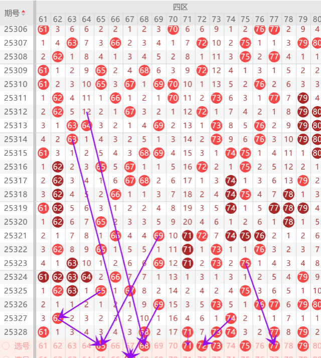 四区间打底号是65.67.69.72.73.74.76.77.78中参考4-5码开出机会