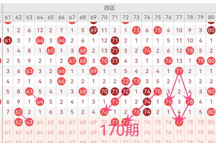 上期福彩快乐8第 2025169期开奖号码为【03 06 13 14 17 19 23 28 34 38 41 43 47 55 58 62 70 73 74 80】,其中大小比为10:10,奇偶比为10:10,和值为798,跨度为76,四区间比为6:4:5:5。下面是对本期对于 01 - 80 的四个区间进行详细分析。