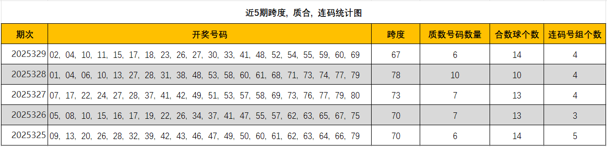 本期观点:合数在近五期保持明显优势。上期质数从高位回落至6个,但考虑到质数出号通常有间歇性,本期质数个数可能维持在5-7个的区间。可以结合八区间(将01-80分为八个区间)观察冷热区域,例如近期较冷的31-40区间或有回补。