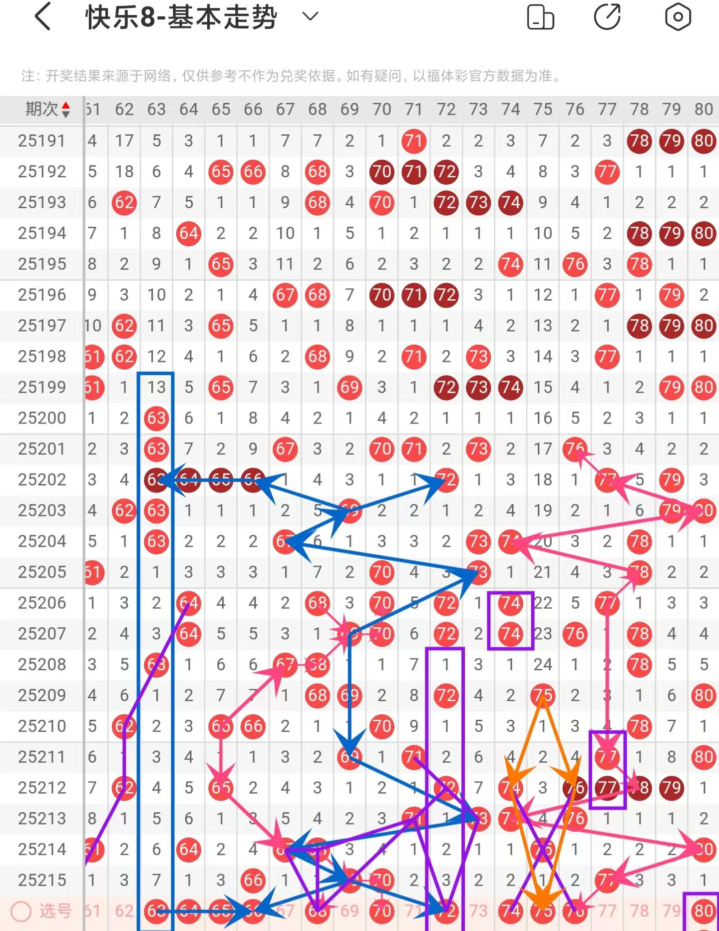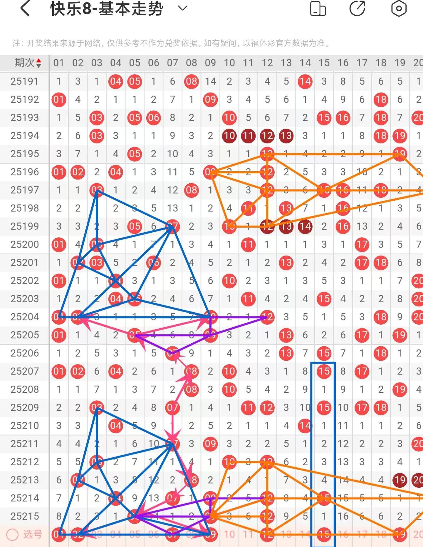 快乐八2025216期出号分析,上期金胆铜胆中,选二、选三复式中,四胆全拖中三胆