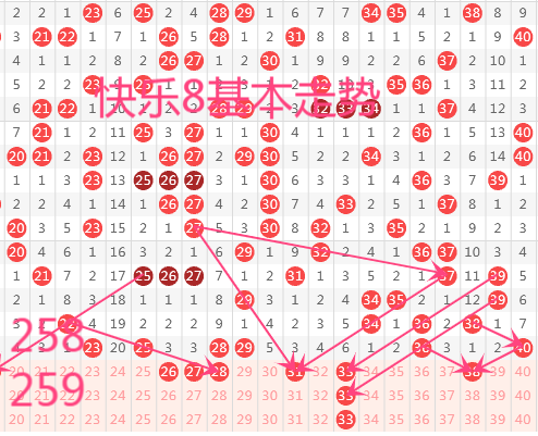 第二区间分析,上期开出23-25-28-29-36-40六个号,本区间预测取号五个左右。先看26-27-28的小三连下号,也是走热态中取号,31的斜连147的走势,33是斜连369的走势。38是菱形号也是隔期号下。推荐:26-27-28-31-33-38