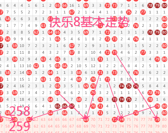 第四区间分析,上期开出64-66-71-76-80五个号码,本区间预测取号五个左右,先看61的斜连号走147的路线,69的斜连65-67-69和71-70-69的斜连号,73-74看对子下号,也是有走斜连走势。79的隔期回补。推荐:61-69-73-74-79.