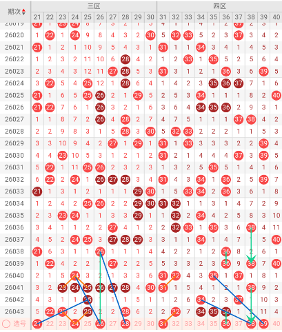 三区开出:22,23,25,28 奇偶比: 2:2 和值:98 跨度:6,上期开出个4号码,奇偶数号码均衡。该区呈现爆发-冷却-再爆发的强烈节奏。26041期7码创下历史峰值,随后迅速跌至1码,上期又回升至4码。这种大起大落意味着趋势稳定性极差,本期大概率回落至2-3码。观察上期的四个号码,它们并非连号,而是跳跃式分布。这种跳跃密集比线性连号对后续出号的抑制作用更强,因为它覆盖了多个离散点位,导致大量号码被同时消耗。在24-28这个高密度段,24和26是明显的缺口,历来这类缺口在下一期被填补的概率超过60%。上期出号的其邻号21、24、26、28均有较强的跟出需求。
