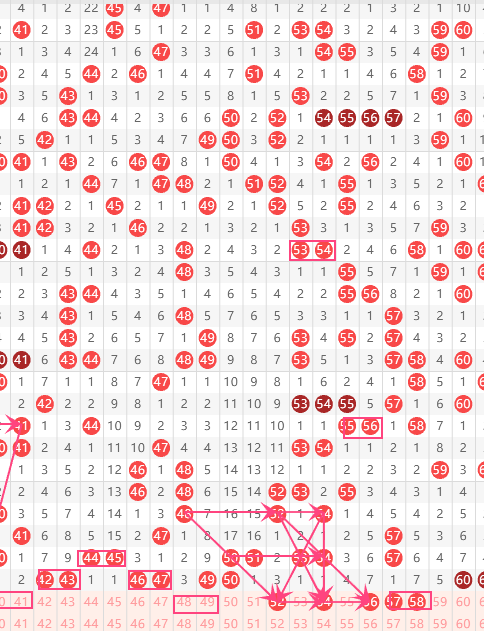 三区分析:【41-60】(走势图标注号码非小黄车大底,请谨慎参考,具体思路将在直播间分享讨论)