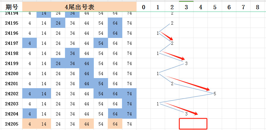 四尾上期开出三码走势,看好本期开出的号码范围是三码或四码。四尾在202期开出了五码走势,本期会不会再次开出五码走势?也是有这个可能的,不过大概率的开出还是三码走势或四码走势。五码的可以防一下。