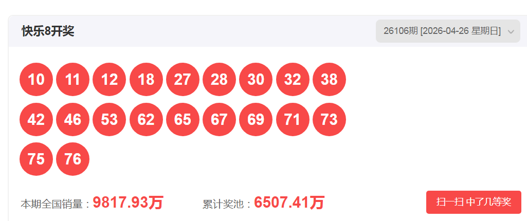 “专注快乐8,开心快乐吧!”您好,我是九尾锦鲤,有幸与您在这里相遇。上期(快乐8第202106期)分析和推荐部分正确!今天组号上会继续努力!小车方案已精选优化,期望对您今天的选号、组号有所帮助。下面是我关于快乐八2026年第107期的走势研判分析及精选推荐。