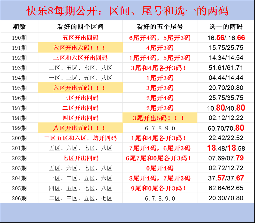 快乐8第2025206期:上期四胆中三胆!本期看好的五个尾号!