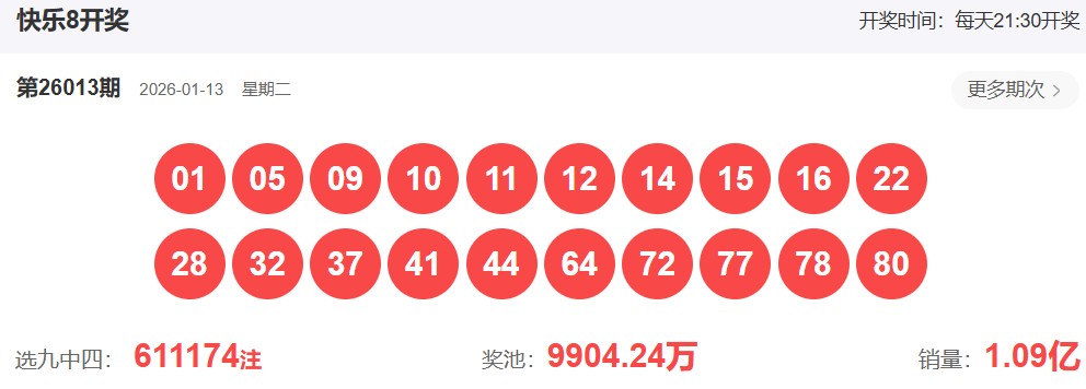 快乐8第2026013期开奖号码: