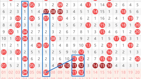 【第一区间01-20】:上期开出9个号码。本期推荐号码04-07-11-12。04为遗漏1-2-3形态,07等距和斜连均具,11-12看好热对子持续开出。一区间推荐重点号码:04-07-11。