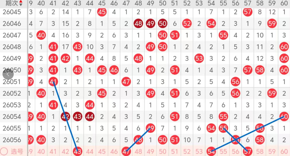 第三区间的走势分析:第三区间上期开出了五个号码球,主要的落号点位在三区间的前后半区,走出了一奇四偶的形态走势,上期三区间的前半区落下了两个号码球,后半区落下了三个号码球,整个三区间处于走热的趋势,根据三区间的走势规律,今天的三区间我们主看斜连码的落位,前半区主看43 47的落位,特别是43可以重点关注,再看后半区54 57的落位,也是热码组合,这四个号码球落下的机会很大,这四个号球建议大家打个四胆拖,或者打个四码复三比较稳妥,参考为主!
