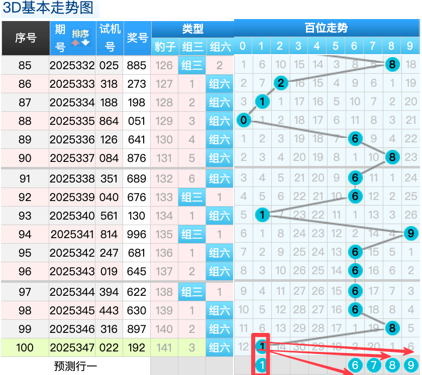 3D上期百位开出的1球,这个奖号是一个小周期的回补落位趋势也是一个比较好的符合百位上的落位点,先来看6号球这里还是有机会继续走出一个常搭配的趋势也是一个热码的回补号码,还有一个就是7号球和8号球这里的冷号码落位形态的概率在这里的机会还是很好的要注意防守,然后9号球这里要注意也是一个大冷号间隔六期回补落位趋势要注意防守,1号球在百位上要注意可能有机会走出重码回补的落位注意防守 。