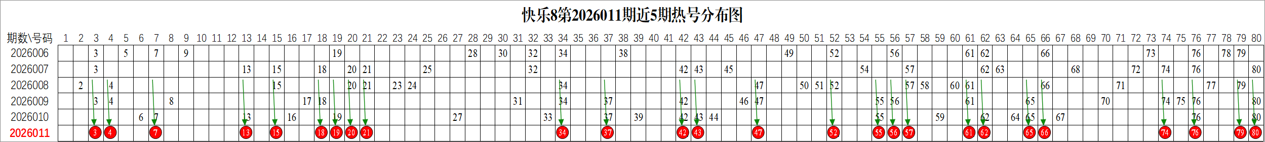 以2026009期福彩快乐8号码为例: