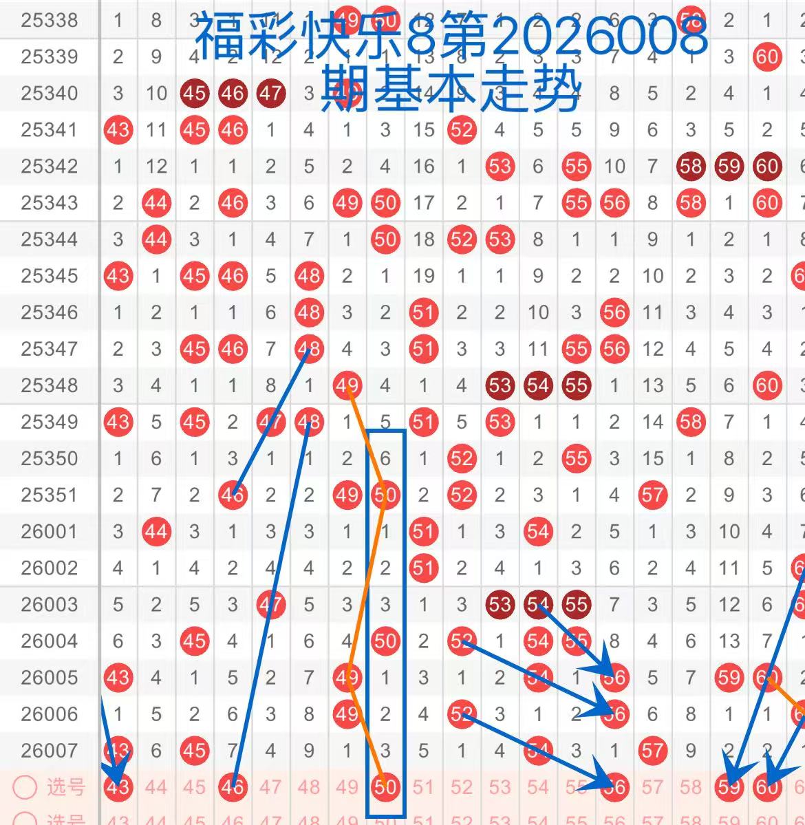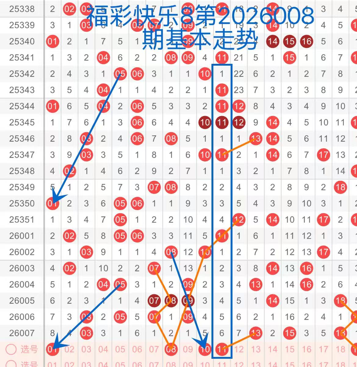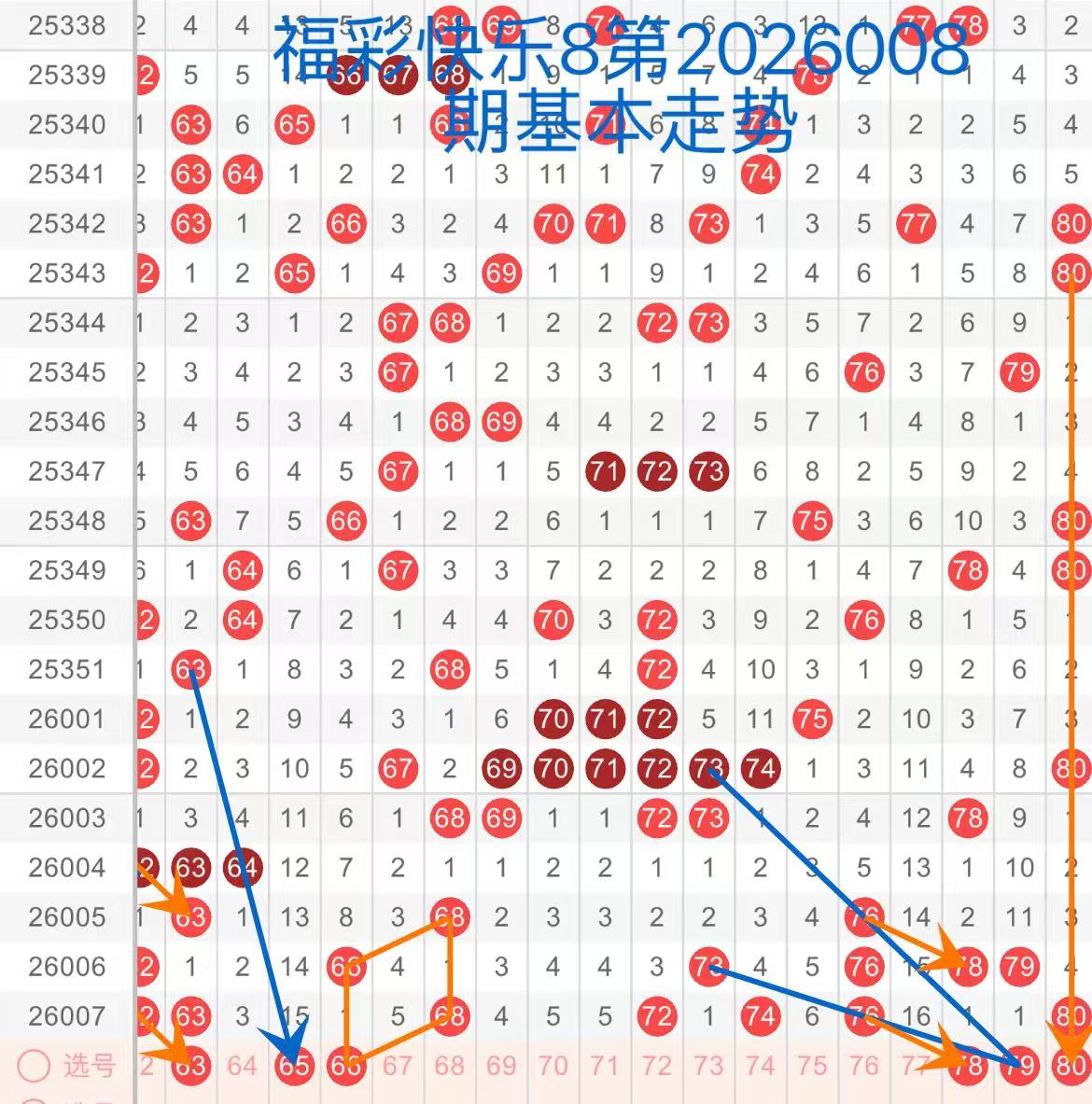 下面是我对2026008期福彩快乐8的分析和预判,希望通过我的分析能让大家今晚大满贯!福彩快乐8上期开奖号码如下图