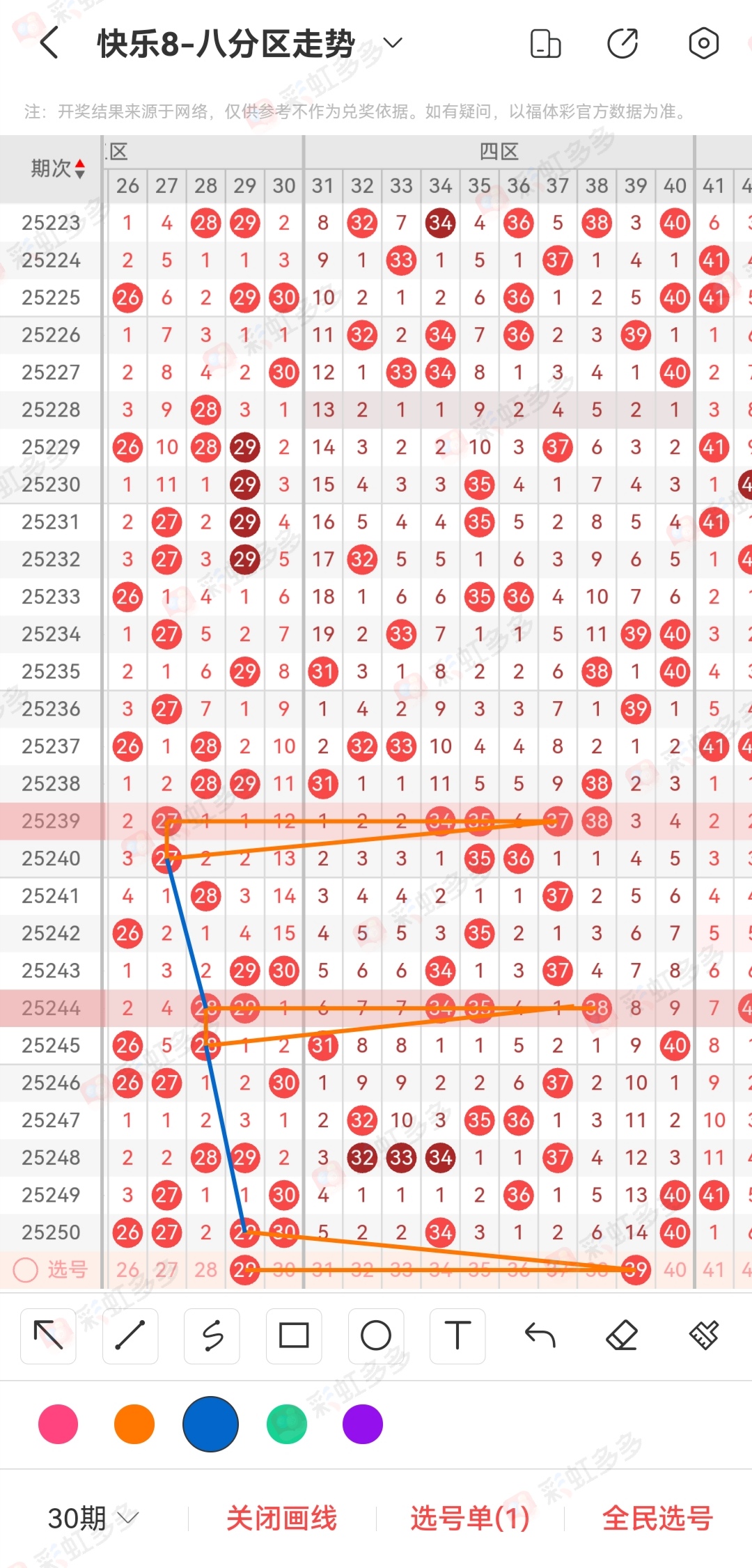 第二张图我们来讲解一下今天的注意点。这一张图是有说法的,可以说这里的点位非常明显。27走重,28走重顺位29走重,由于形态间隔不一样,这里不能说29不会走重。可以发现27同出37,28同出38。那么今天的29万一走重能不能同出39。不论是29还是39都是属于形态好看的号码。就比方说昨天的20,就是简简单单。大家可以看一下历史记录,40走重出现39 40 41顺位的不在少数。所以这里的点就是很明的。大家可以单挑选二。当然高倍是不好看的。你说这里的2码这么明确,真要说不同的细节点也是可以发现的。看个人,我给大家引荐出来,你们参考一下。其实这里最简单的玩法不应该是选二,拖码考虑几个选三不是更好吗。至于连带同出考虑的多了就容易出现怀疑的。这里不多说,自己判断。