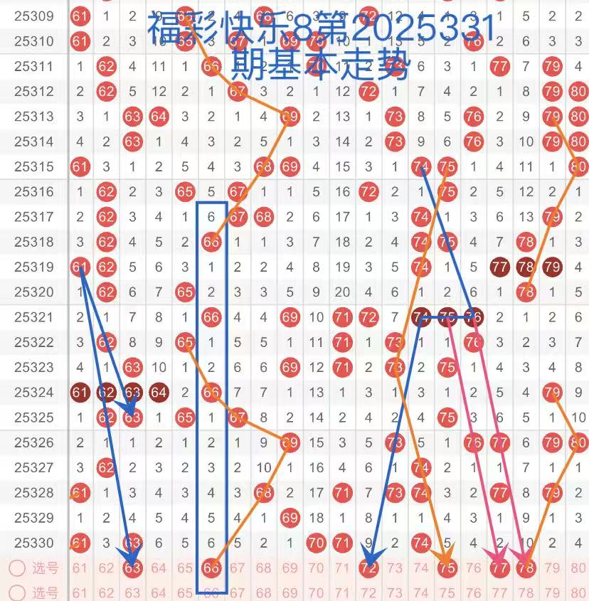 25331期福彩快乐8,走势综合分析(本期一胆参考66)