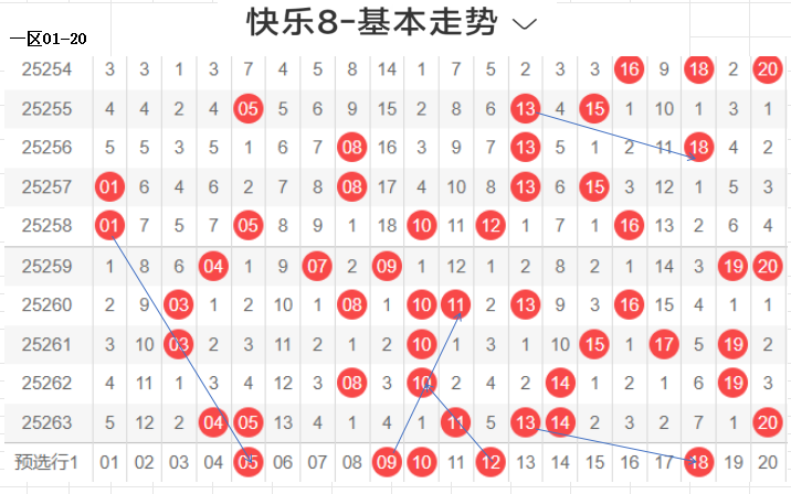 上期开奖数据解析,区间比6545,重码6个,5期以下开出不含重码13个,冷码开出1个,8期以上.尾数集中4尾,其他尾比例平均,奇偶比的区间很稳定.5期以下加重码达19个数,重点选码在5期以下,选码方式做出调整.以区间比,重码,尾数比,走势图为主要条件选码,先做出粗选,在总结.以此为据,推测264期.