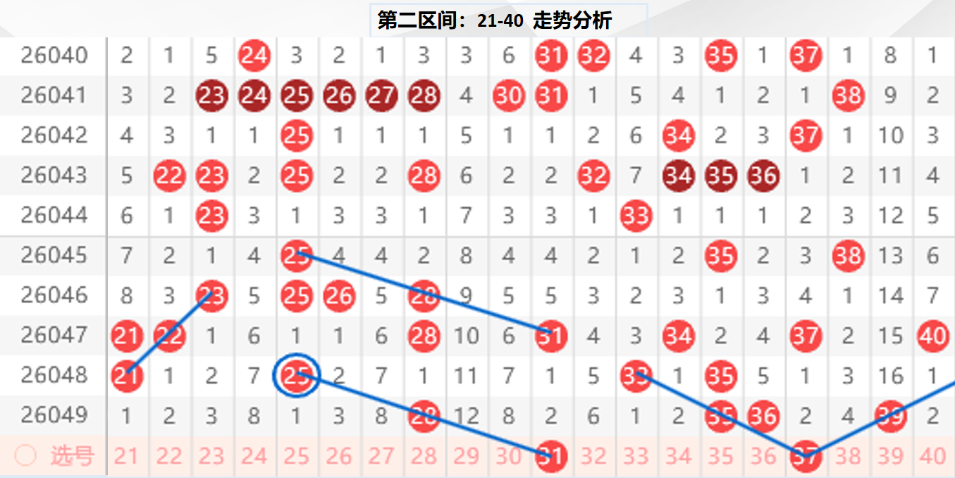 二区分析:【21-40】(走势图标注号码非小黄车大底,请谨慎参考,具体思路将在直播间分享讨论)