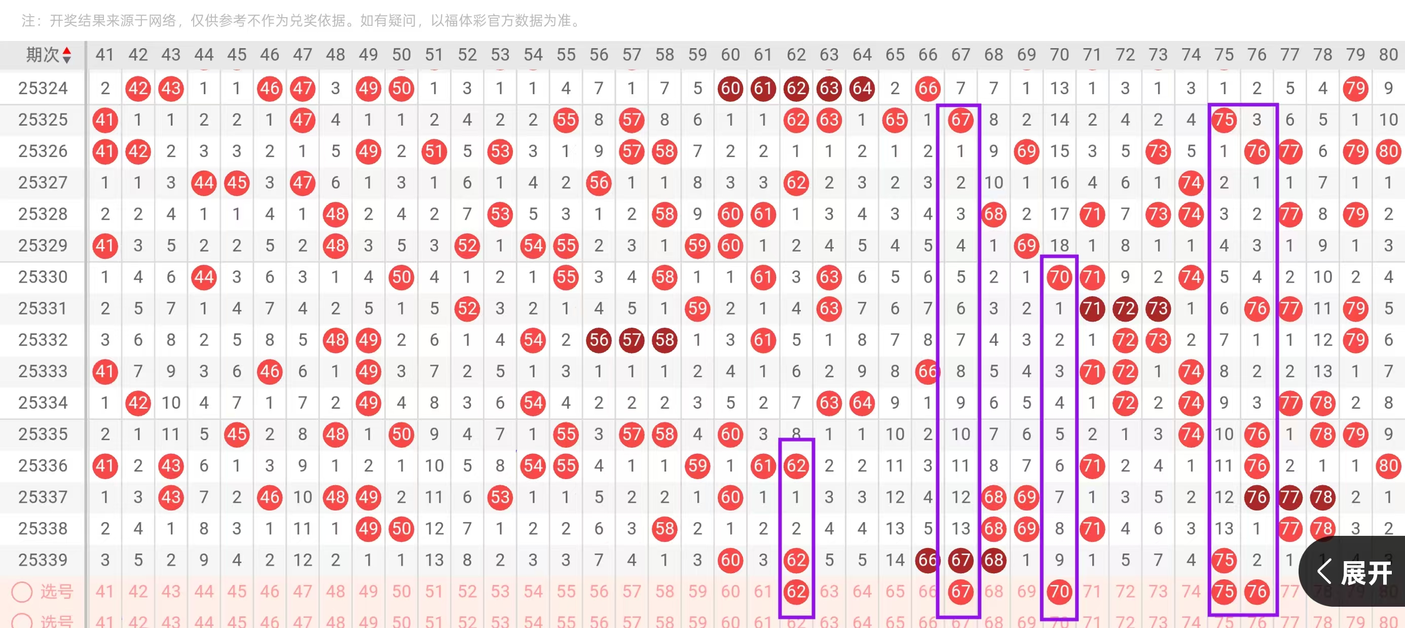 四区61-80:四区间,上一期回补了5个号码的下落,从近期4区间的号码下落点位来看,一直持续走热和回补大遗漏,今天我们要重点关注的是四区间重码的一个回补,和中间部位空缺位置的下落,在六头,首先我们要重点关注的是62-66同开重码的一个回补,和67-68重码的一个下落,这里可用62-67的搭配和66-68的搭配回补,回到七头位置,今天这里我们要重点关注的是70-72-2下1的选择和74-76-2下一的选择,这里可用70-76的搭配和72-74的搭配回补,这里我们要重点防的是75-76开出对子下落的可能。