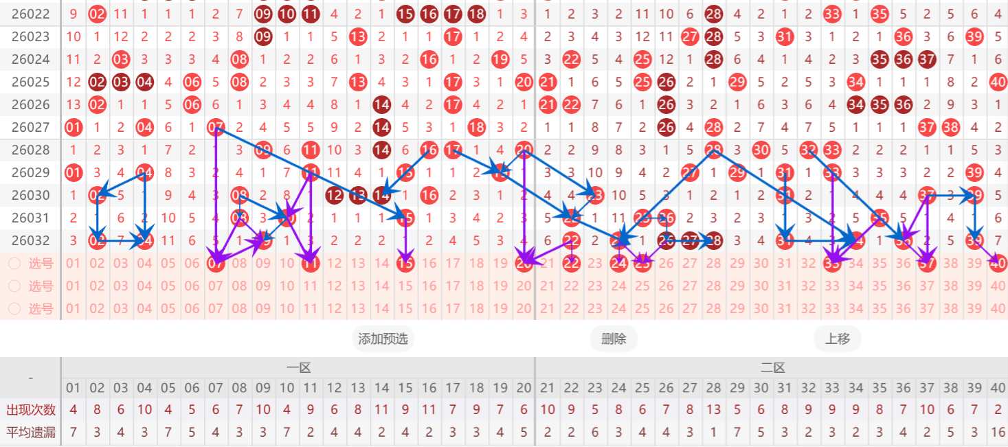 第二:判断第一区间热度会有所上升,注意一些奇数偶数搭配的联动号码,需关注斜连形态的号码。