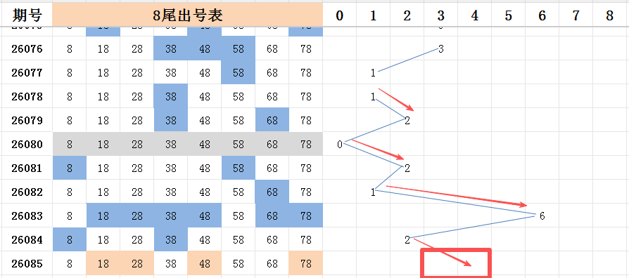 快乐8第26085期:本期看好的五个尾号!上期8码中5码!10码中6码!