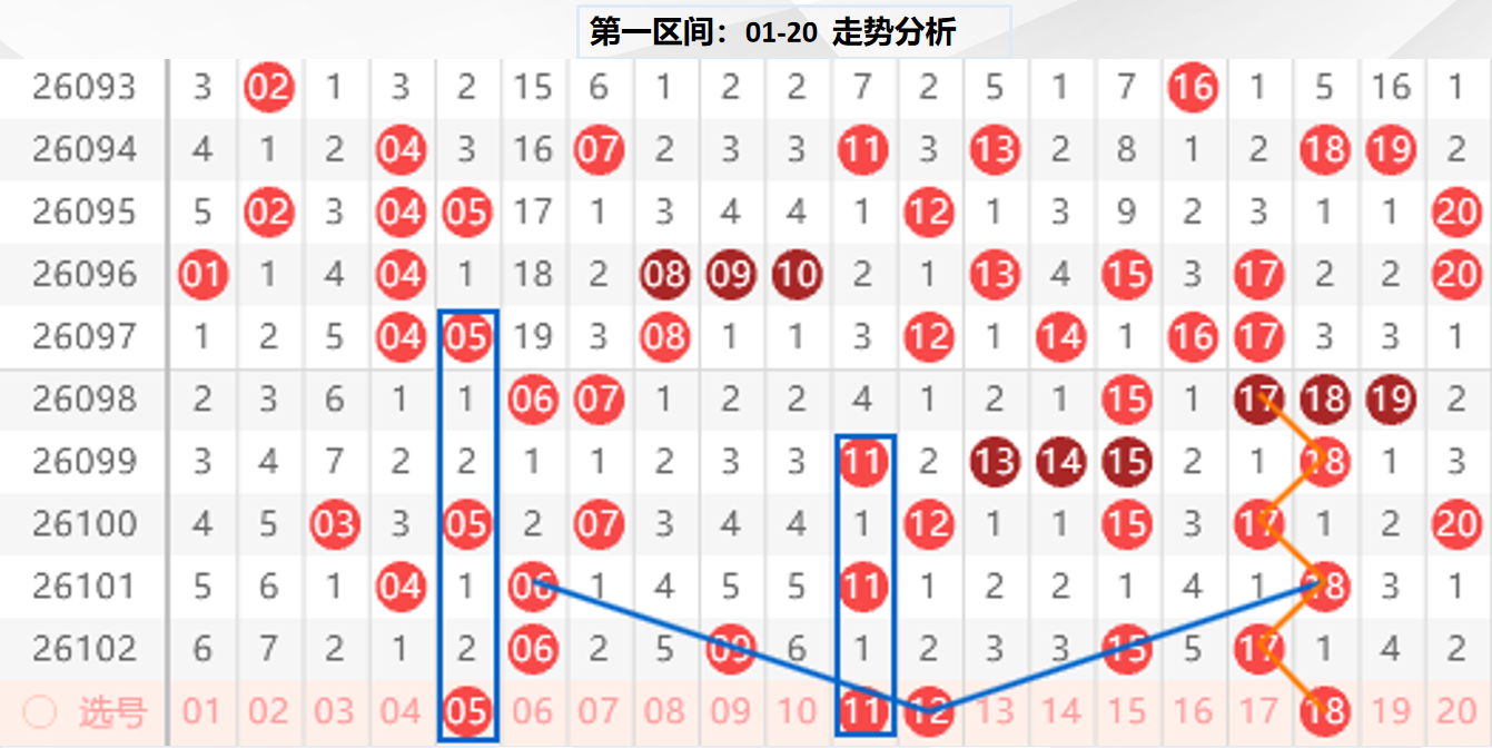 一区分析:【01-20】(走势图标注号码非小黄车大底,请谨慎参考,具体思路将在直播间分享讨论)