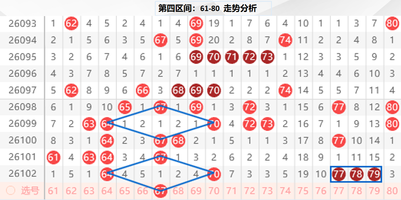 四区分析:【61-80】(走势图标注号码非小黄车大底,请谨慎参考,具体思路将在直播间分享讨论)