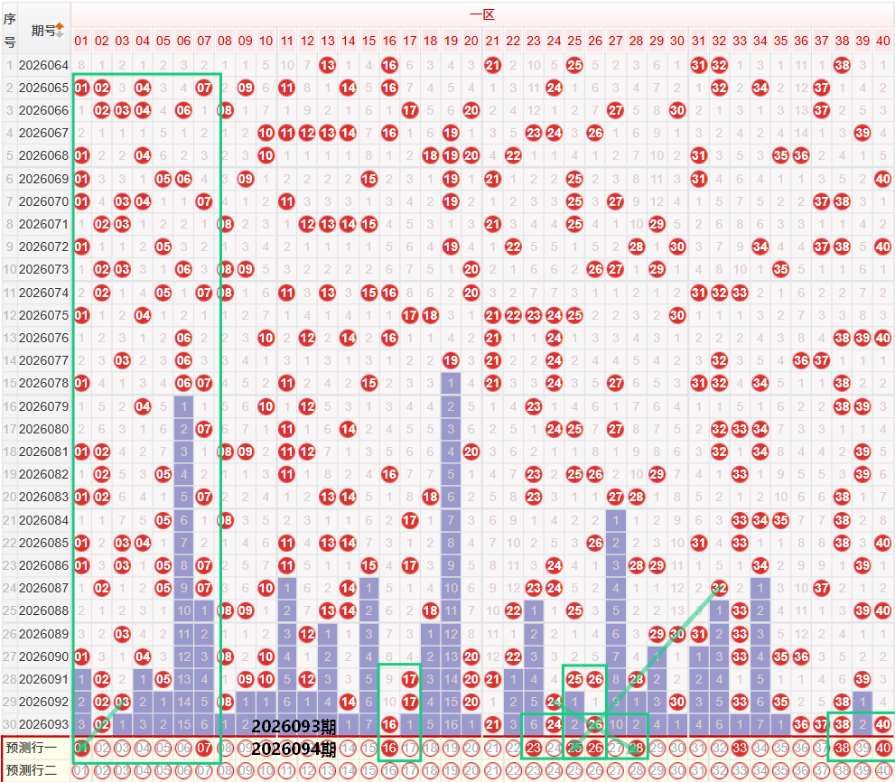 如图所示:在本期小数区的选号中,注意在上期的走势中一区间开出了2枚中奖号码,落位在区间的最低位走势,在近期的走势中,一区间落位在两枚中奖号码之后,下期的走势中,多次出现较强的反弹走势,但是需要注意的是上期的和值走势落位在大和值走势,且近期的和值走势连续性较为强势,因此本期要注意一区间的落号数量可能会出现小幅度的上升走势,本期注意16的重号走势,以及上期开出02之后,本期要注意01的斜线第三期走势,另外要注意近期的走势中,斜线三期的下方多见于短期遗漏,上期的10 09 08下方出现断号之后,本期要注意下方出现号码回补走势,二区间上期开出了7枚中奖号码,区间落号比值为3/4,3字头开出了36 37 38的三连走势,以及36 38 40 42的偶数四连走势,本期注意偶数的重号走势,33号的重号第三期走势下方要注意33的遗漏一期多期走势,以及区间同尾双码走势,前段位置在上期开出21 24 26的位置下方要注意多码走势,形态走势建议考虑双同路的多码走势,个人较为看好23 25 26 28的四码走势。