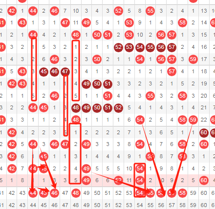 五区号码建议参考44空一跳,防44 45 46三连,五区后区建议参考48遗漏回补,六区建议参考56间隔顺位斜连,防55 56 57三连,六区后区建议参考58,60对应58出号。今日五区六区推荐号码44 45 46 48 54 55 56 57 58