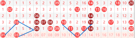 上期三区前区连续两期断头,观察前三期出号为孤码形态,本期前区操作依然不作为重点选号区域,可从同遗漏出号形态关联本期选号,主要防范区域还是放在后期以上期出号分边关联选号,连号形态可作重点关注形态;三区可关注以下号码: