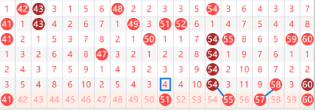上期四区出号热度有所回调,观察近期出号连号和重号形态作为主要出号对象,本期选号关联上期出号作重号形态,选号侧重连号部分,预测四区还是作为本期出号主力区;本期四区可关注以下号码: