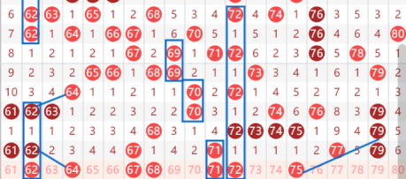 本期分析号码为:01、03、12、22、24、26、29、30、33、35、36、38、41、51、55、57、60、62、64、67、68、71、72、75。