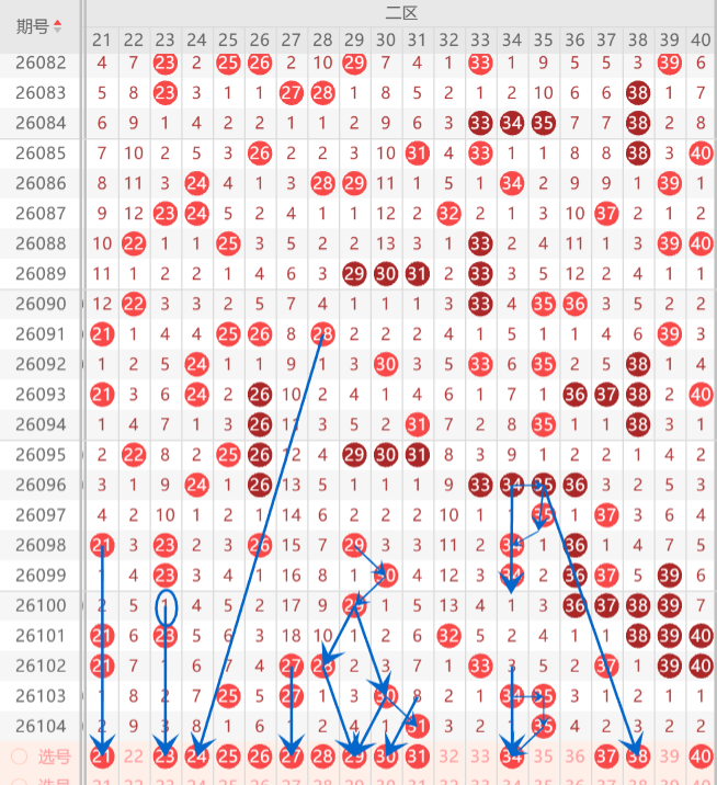 二区间注意打底是21.23.24.25.27.29.30.34.38.40注参考2-3码开出机会,