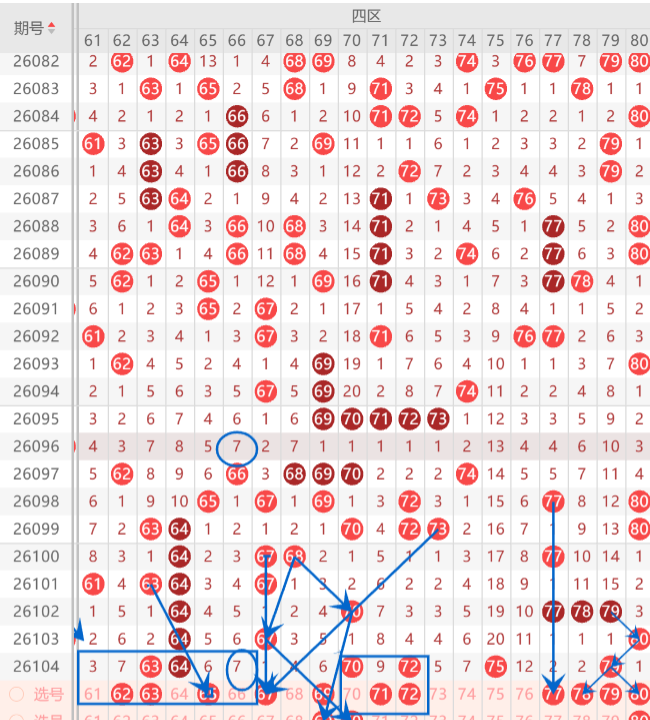 四区间关注的打底是63.65.67.69.70.71.72.73.77.78.80中参考3-4码开出机会