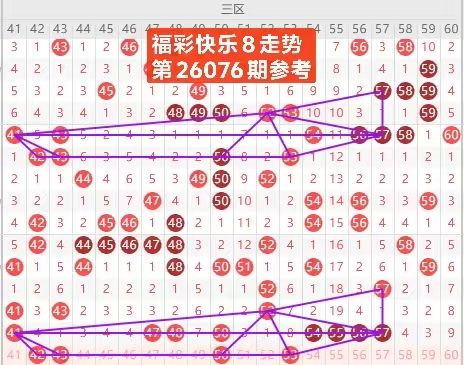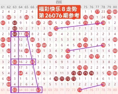 福彩快乐8是从01-80个号码中每期开出20个号码,我们把80个号码分为四个区:一区01-20号,二区21-40号,三区41-60号,四区61-80号
