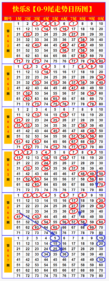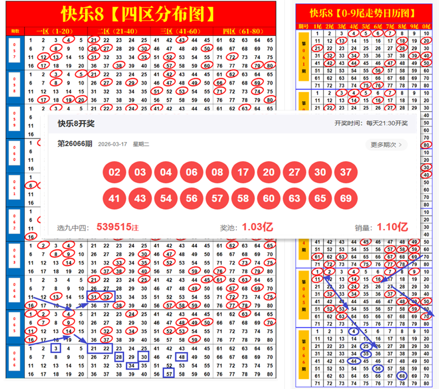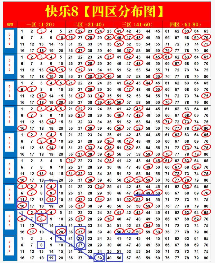 快乐8第2026067期尾号、四分区画线分析,来看看我的思路如何!