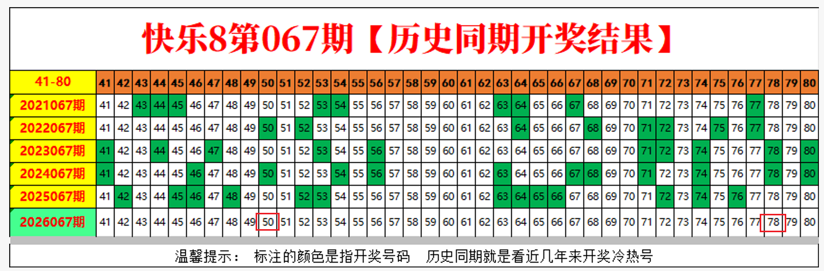 历史同期开奖结果仅做个参考数据即可。以后不会做过多的分析,因为涉及的号码比较多,也无法更细致的体现出来。它不像开奖走势图那样,可以直观的看到,由于开奖期数的限制,所以还是把重心放到常规走势图上。