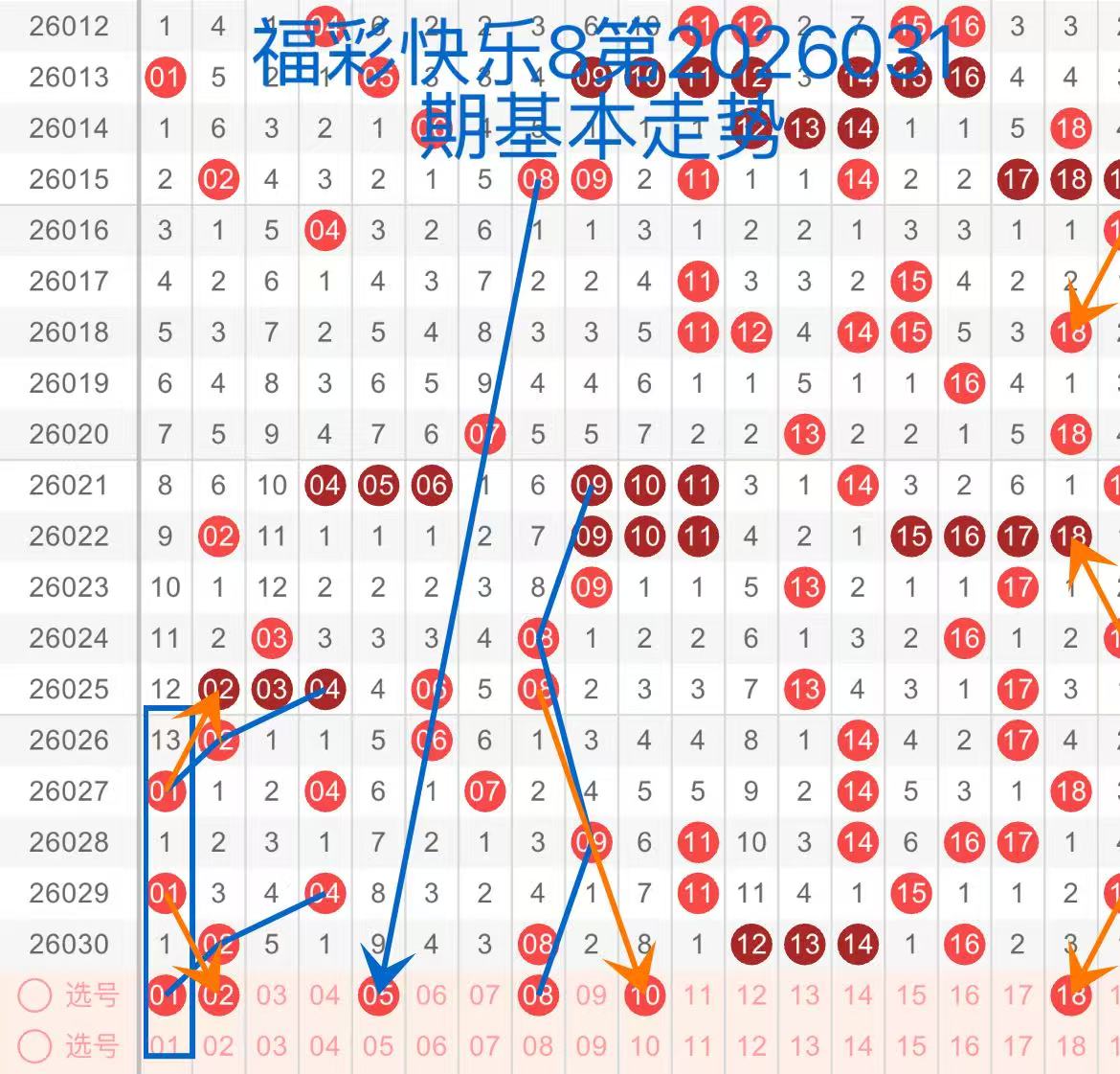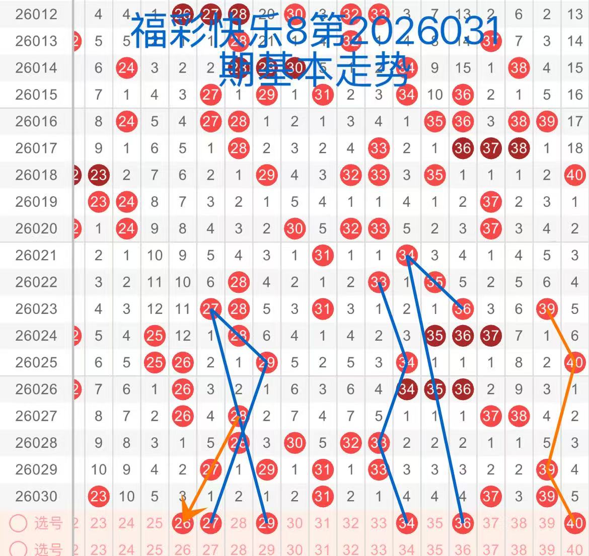 下面是我对2026031期福彩快乐8的分析和预判,希望通过我的分析能让大家今晚大满贯!福彩快乐8上期开奖号码如下图