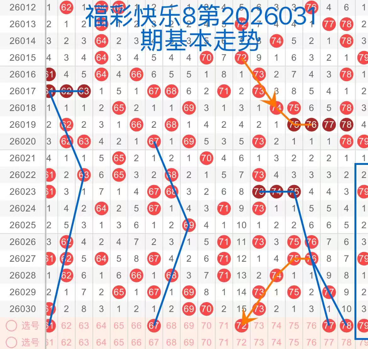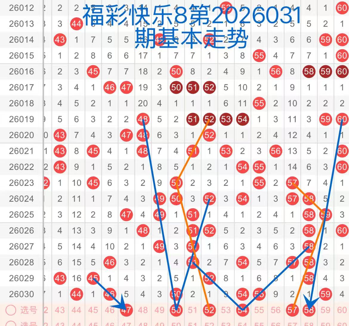 26031期福彩快乐8,走势综合分析(本期一胆参考50)