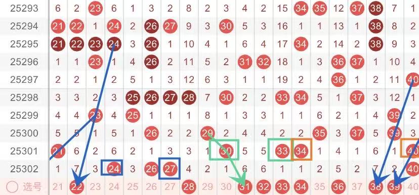 二区上期开号四码,主要以假四连和重码形式开出。本期做号考虑五码左右,首先看隔期斜三连的22号球下落机会非常大,然后看24、27同路考虑分边28,再看30、33同路放空考虑分边31和32,防守33号球直接落号补位。最后看34、40同路放空考虑34直接落号补位,防守分边39号球。空位在36、38两码择一布局。
