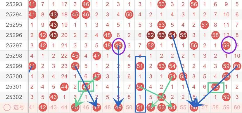 该区间可做选二搭配组合有42+49或51+56。第三区间胆码主看42、45、49、50、51、52、53、54、56。