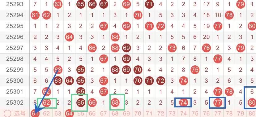 上期四区开号七码,主要以重号和孤码形式开出。本期考虑开号四码左右,首先看62、65、68三同路考虑分边61和64号球。再看67、70同路考虑70直接落号补位。最后看74、77、80同路考虑分边75、76和78号球,防守重码80号球。