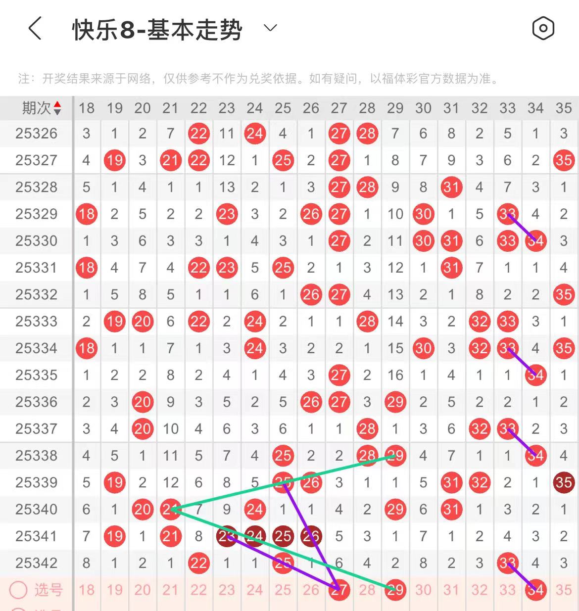 21-30区:本区间上期开出了两个号码, 从号码走势图上看,该区号码走势有走冷的趋势,在选号上需谨慎,本期出号个数在两个号码左右,有出号走势的号码有27号,双线斜连出号走势,29号,回首掏斜连出号走势。