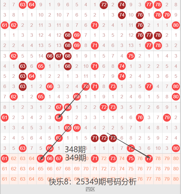 回顾25348期开奖号码:02 19 20 22 24 25 30 33 35 39 41 49 53 54 55 60 63 75 80,最近一段时间号码爆区几率特别高,目前已经连续多次出现爆区热开的情况,爆区之后基本上都是迅速回调,转换至其他区间继续暴热,大家若是能抓准区间,或许有很大的机会,但是号码的变盘规律是非常的快,很难把握,个人建议谨慎选择,不要 盲目的去操作~~