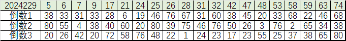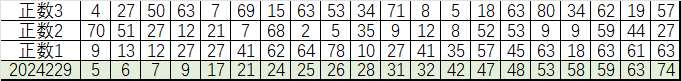 可以看出,每一组对应号码两两和值为80。这一组补数在2024229期开出3个。
