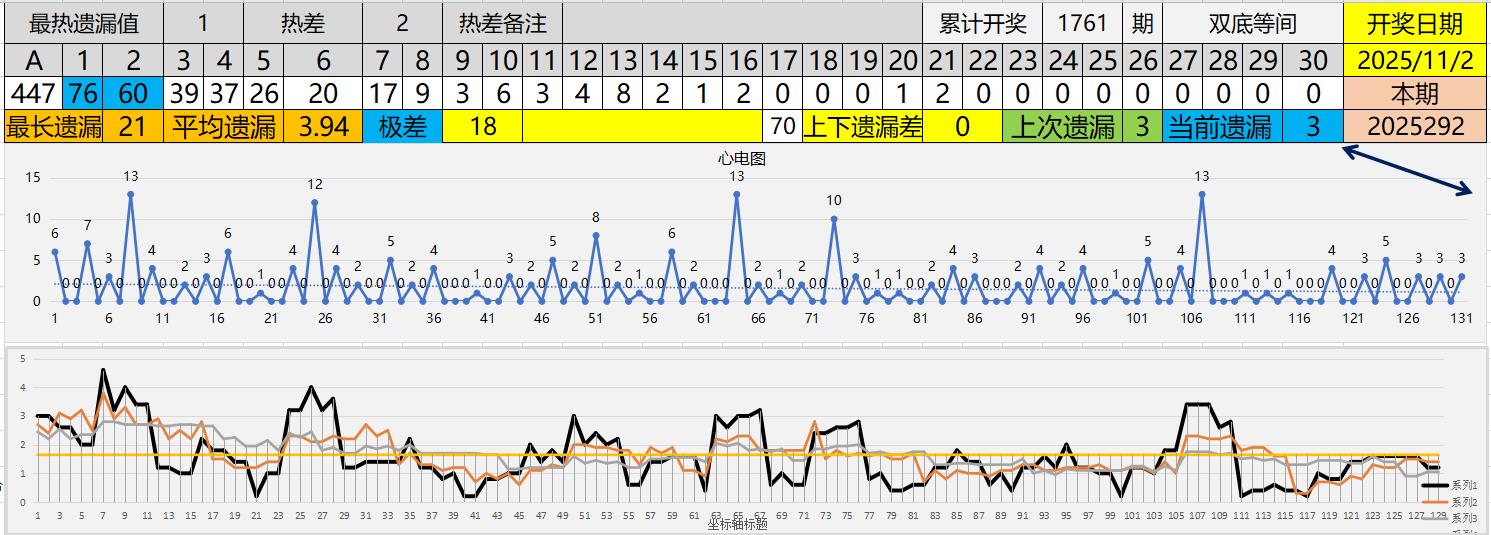 3、当前遗漏3,前2次开出都是遗漏3,形成了三底对称等间周期,特征明显,可以关注。