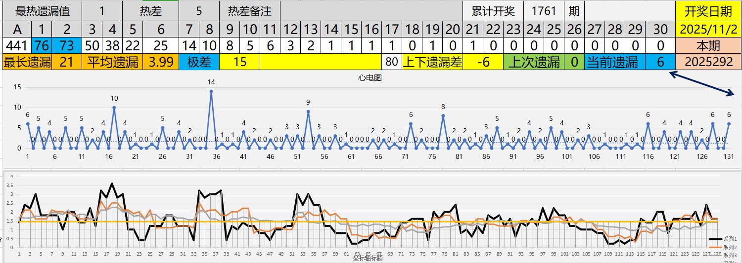 2、历史最长遗漏纪录21,当前遗漏6,距离极值还有15期。
