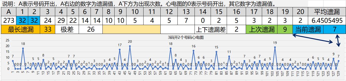 当前遗漏7,就是有7期未开2码组合了。从上次遗漏19开出后开始的本轮上周期,期间遗漏峰值9(也是上次开出遗漏值),当前遗漏7,距离期间遗漏峰值只差2期。从本期开始,可能3期之内就有机会开2个或3个了,可以关注。