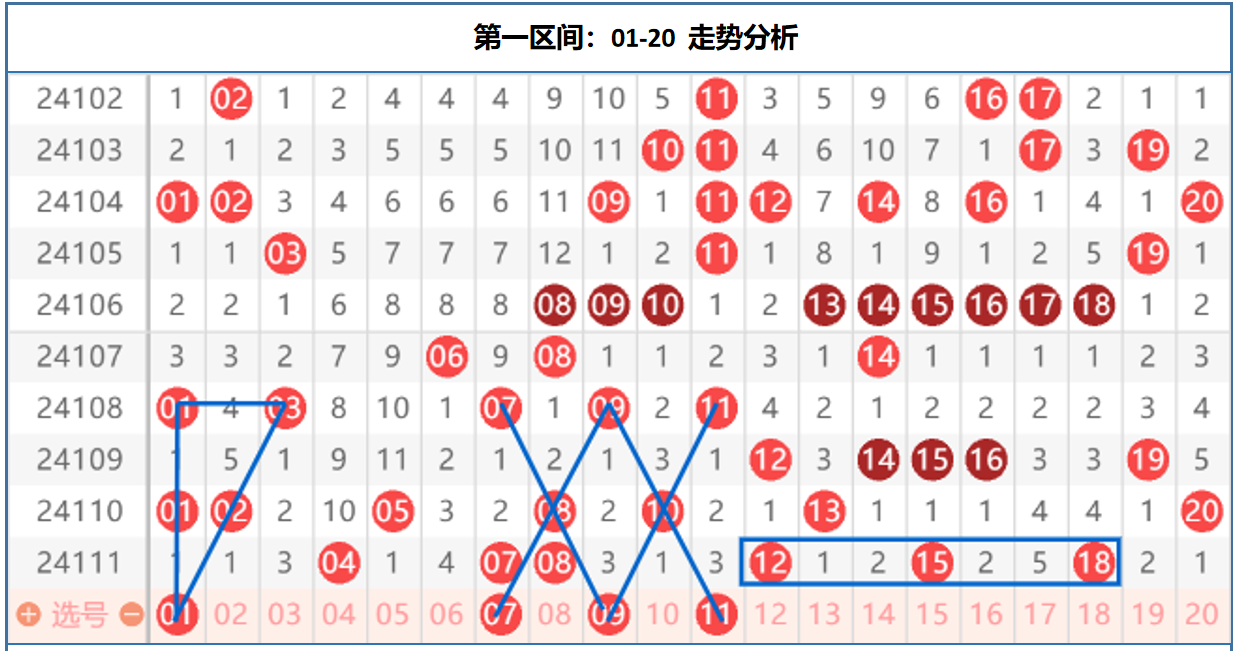 一区分析:【01-20】(走势图标注号码非小黄车大底,请谨慎参考,具体思路将在直播间分享讨论)