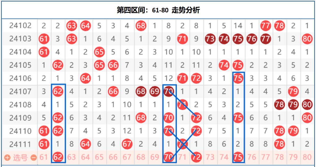 四区分析:【61-80】(走势图标注号码非小黄车大底,请谨慎参考,具体思路将在直播间分享讨论)